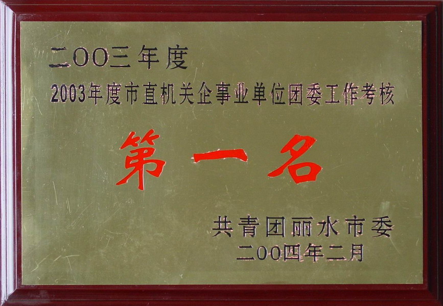 2003年度丽水市直机关企事业单位团委工作考核第一名