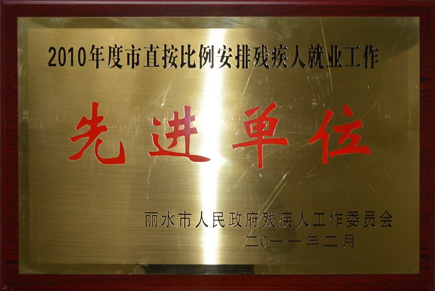 2010年度丽水市直按比例安排残疾人就业工作先进单位
