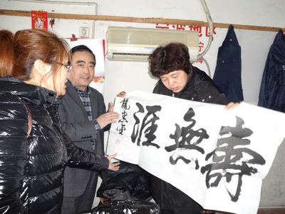 终于,神色焦急的杨先生进入了宣主任的视线,她主动上前询问。一听到有人捡到包,杨先生心情很激动,赶紧跟着宣主任到行包受理室查问。最后经过核对确认,小田捡到的包正是他丢失的;经清点,包内物品一件不少。杨先生说,他是代表山东泰山文化艺术研究院来丽水联系中国艺术文化交流的;笔记本电脑里全是文化交流的资料,对他来说非常重要,他非常感动,非要重重酬谢小田和宣主任不可。当杨先生听到宣主任说,东站的工作人员拾物都会上交归还时,就对东站的领导给予员工的教育培养深表钦佩。为表示感谢,杨先生坚持要赠送给小田一幅他的墨宝“寿无涯”,喻示着好人一生平安,好人长寿无疆。