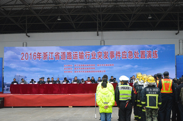 11月24日,由浙江省道路运输管理局、丽水市交通运输局主办,丽水市道路运输管理局承办,丽水市汽车运输集团股份有限公司协办的2016年浙江省道路运输行业突发事件应急处置演练在丽水客运西站举行。