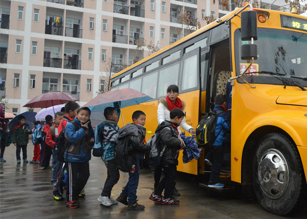 仪式结束后,部分学生坐上新校车,进行了一次体验之旅。学生雷晨波说:“我以前上学都是坐电瓶车的,遇到下雨天衣服都会淋湿,还很冷,现在可以坐新校车了,以后,衣服不会被淋湿了,也不会冷了。”