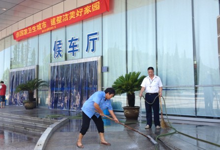 创卫工作是当前西站各项工作中的重中之重,客运西站实行全站员工总动员,要求每位员工做到视线内我就是保洁员,在确保完成本职工作的同时,全力以赴打好这场创卫攻坚战,实行“客运工作与创卫工作两手抓,两手都要硬。”