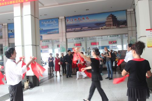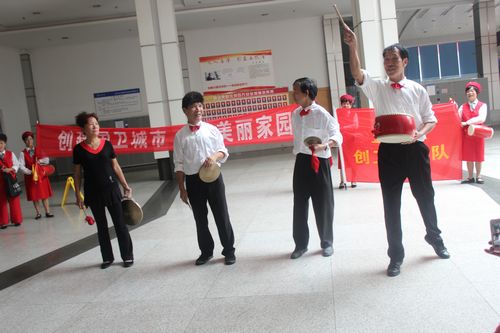10月10日上午,莲都区创卫宣传队走进客运西站,在候车室用他们自己编排的创卫宣传小节目向西站员工和过往的旅客进行创国卫的宣传。 节目的内容有腰鼓、三句半、快板等,宣传队员认真的表演,引来不少乘车旅客驻足观看。通过这样的宣传活动,将创卫受益你我他这个理念传递给大家,同时营造人人关心创卫,支持创卫的良好氛围。