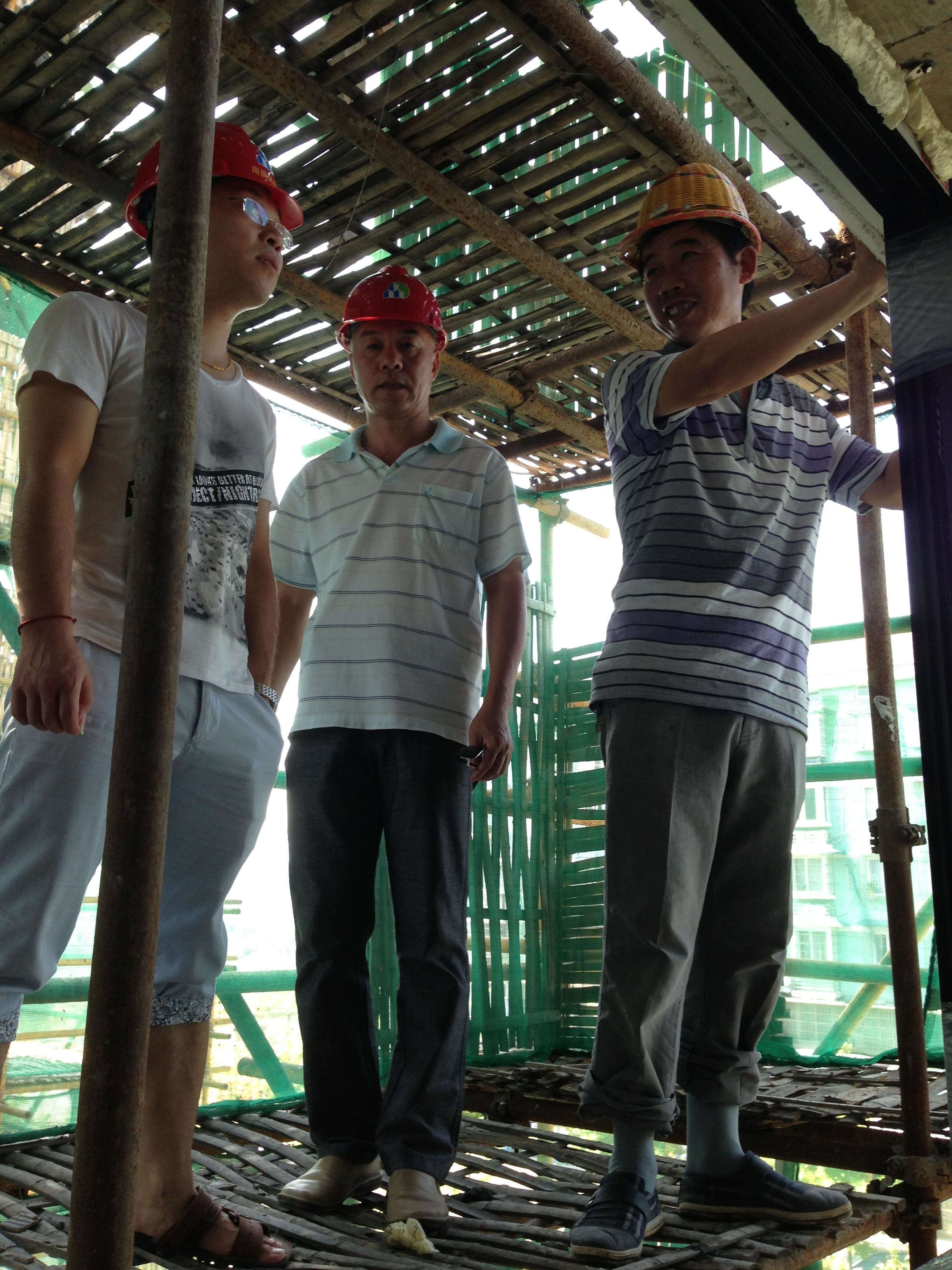 走进施工现场,大家没有被高温所吓到,坚守在自己的岗位上,兢兢业业地完成着各项任务。看!工程部员工正深入工地现场了解情况:检查铝合金门窗安装是否符合要求;对防火门材料进行记录,对比质量是否达标;对施工所需的钢筋、水泥等材料的检验以及重要部位和关健节点的施工,进行监督管理。站在太阳底下,这痛苦的“桑拿天”让员工们的衣服被汗水浸湿,嘴巴里就像有团火,手刚抹掉额头的汗,马上就会流出来,裤子上逐渐出现了“云彩”,原来那是汗渍。为了工程项目能早日竣工交付使用,大家都没有一句怨言,正以百分之二百的热情投入这场“高温持久仗”中。
