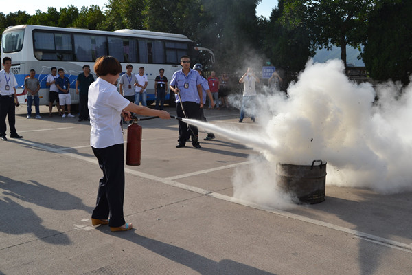 (科目一:消防演练)保卫科专职消防员给大家详细讲解灭火器和消防水带使用方法、注意事项及扑灭技巧。并就发现火灾后如何处置等消防知识进行了深入浅出的普及。随后,员工们逐一上场使用灭火器扑灭,让大家亲身体会如何正确使用消防器材。