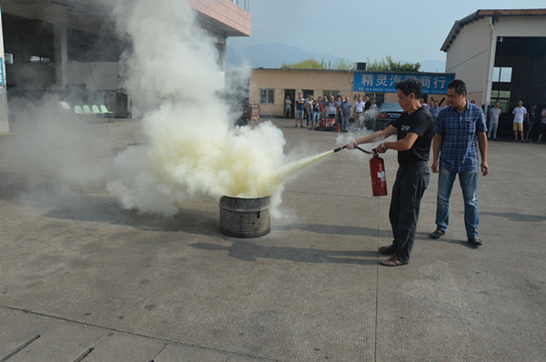 义务消防队队长、安全机务科科长张松标向在场人员详细的介绍了火灾的一般形式、火灾的发展过程和特点、灭火器的基本方法和基本原则、灭火器材的一般原理和使用方法及火灾区域逃生技巧等,并重点培训了手提式干粉灭火器的操作方法,并进行了示范操作。在场人员仔细聆听要领、观察每个细节。随后,各个义务消防队员在场地上进行了火灾扑救的战术演练。