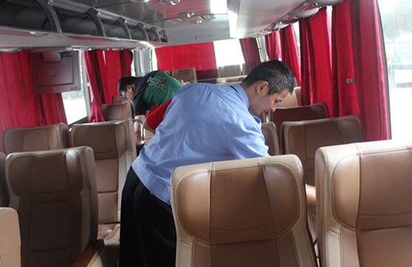 西站保卫稽查人员正在检查座位安全带