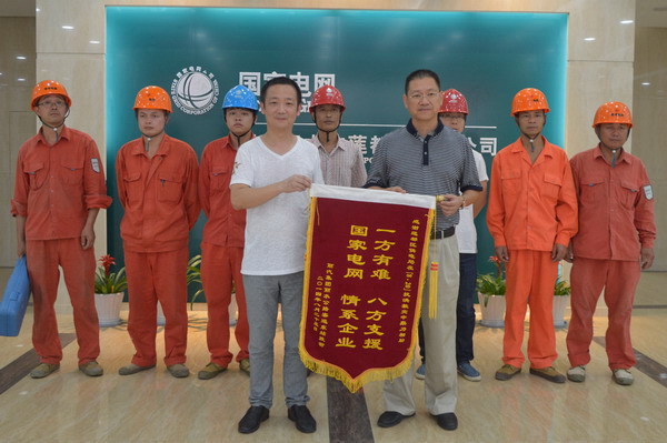 8月25日下午,丽水客运东站经理粱巍一行到国网莲都电力公司,看望参与东站应急电力抢险的师傅们,并送上一面写有“一方有难八方支援,国家电网情系企业”的锦旗表示感谢。