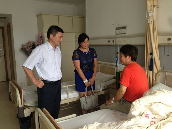 在抗灾自救期间,东站业务站长何小勇在老毛病高血压发病的情况下,还一直坚守岗位,直到所有车辆都撤离站场。他的病情一直牵挂着大家的心,8月26日,集团公司总经理薛和有和工会主席吕丽君专程到医院看望慰问他,嘱咐他安心治病,争取早日康复。