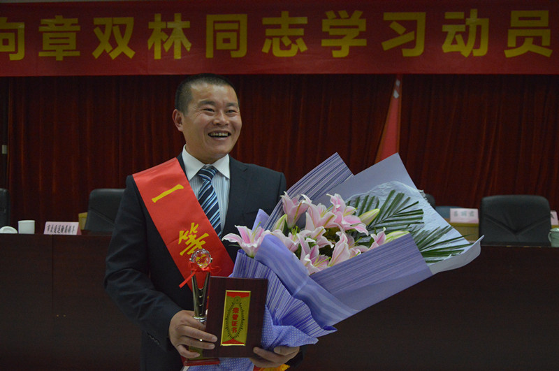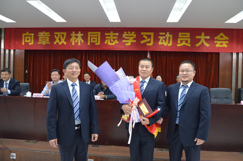 11月6日晚上7点,丽汽集团在六楼会议室召开向章双林同志学习动员大会,大会对章双林同志的英勇行为进行了隆重表彰,丽汽集团董事长叶茂和常务副总经理何赤诠为章双林同志颁发了一等功荣誉证书和奖杯,并献上了鲜花。会议号召全体员工向章双林同志学习。