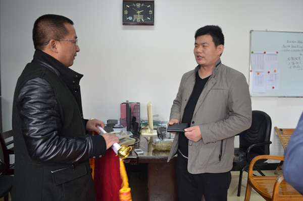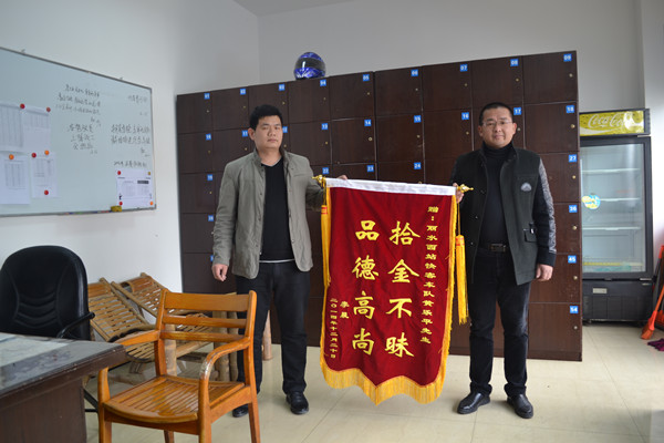12月21日下午2点,失而复得4万现金的李先生手拿锦旗来到快客车队,一再对黄乐平师傅拾金不昧的行为精神表示感谢,他说:“黄乐平师傅在发现遗失物品时,能够包管完好,可见平时他就是一位非常尽责的驾驶员。那天我发现丢了4万元现金的时候,我顿时全身冒冷汗,这可怎么办好呢。当我赶回丽水,看到拉杆箱好好的放在这里时,我悬着的心终于放下了。”李先生说:“今天我送来一面锦旗,就是再次感谢敬业的黄师傅,感谢公司培养出的驾驶员如此优秀,希望公司能多宣传正能量,多表扬黄师傅这样的好人”说着,李先生将一面印有“拾金不昧 品德高尚”的锦旗送到余副经理手中(因黄乐平出车,未能和乘客碰面)。