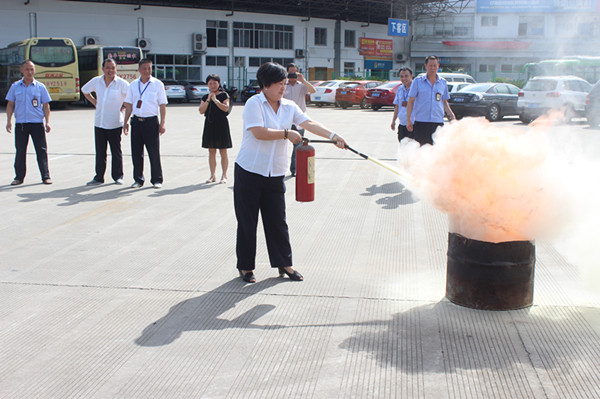 由保卫稽查科科长潘峰向参演人员讲解消防安全常识及灭火器的正确使用方法。随后利用点火桶点起明火,由各班组派出代表使用灭火器将明火扑灭。