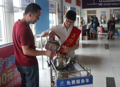 刚入初伏,持续的高温天气,炙烤着丽水城,酷热难耐,7月13日开始,客运西站正式启动夏日送凉活动,从每天早晨7:00至下午17:20,免费为候车的旅客提供降暑凉茶。该活动受到广大旅客的欢迎 “这已经是第2壶了,你看也快见底了。”上午9:30时,服务班班组长周丽梅介绍,“我们一天基本上要送8壶这样的凉茶,为了保证凉茶品质和功效,每天中午交接班时,都会更换壶里的凉茶包。” “谢谢!你们提供的凉茶真的很解暑!”多位乘车的旅客接过服务人员手上的凉茶说。“最近天气持续高温,赶车我们老人家真有点吃不消,在上车前还能这样方便的喝上一杯清热降暑的凉茶,真好!甜入我们心里了,你们真是做了大好事了!”60多岁的大妈笑着说 客运西站开展夏日送凉活动已经有10个年头了,由省级巾帼文明岗“流动之家”服务班负责。岁月轮回,虽然服务班里的许多同志换了一批双一批,但每年进入夏天,服务班的姐妹们始终坚持这一“老传统”。每当温度超过37℃,她们就会用金银花和夏菇草泡制具有清热解暑功能的凉茶,推着服务车穿梭于候车室,为旅客们送去一丝丝沁人心脾的清凉,成为西站一道美丽的风景。
