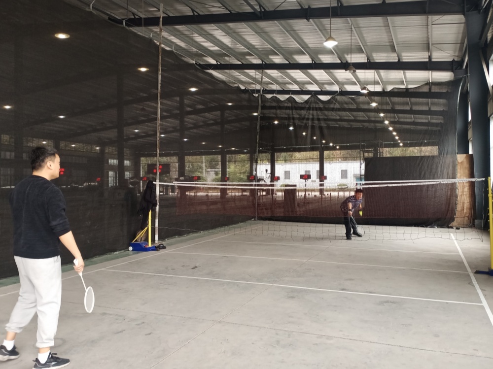 今年春节过后,安检站分工会购买了球网、地坪漆、地胶布、纱网等工具,组织员工自己动手,在检测车间闲置空间里改造出一个可用于羽毛球、气排球等多种运动的简易场地。以最节约成本的方式,尽最大可能让员工可以在休息时间进行休闲运动,放松繁忙工作紧绷的精神,以更好的状态投入工作,也为公司羽毛球、气排球等球类运动项目培养人才。