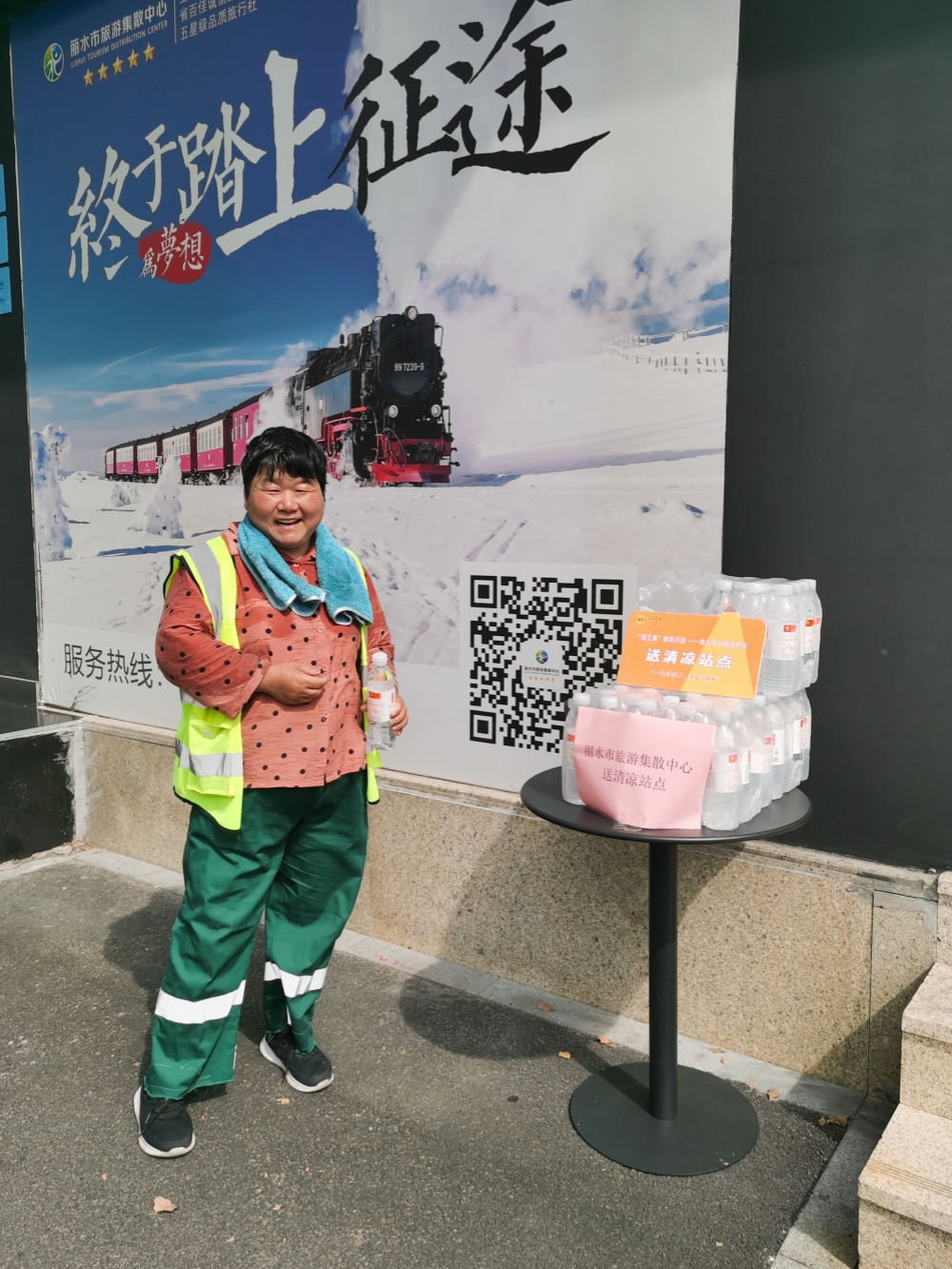 自活动开展以来,集散中心在门市门口摆放了矿泉水,为路过的环卫工人、综合执法人员、外卖配送员、快递员、网约车司机等一线户外劳动者送上“清凉”的慰问。在活动期间,所有户外劳动者都可以到集散中心门市免费领取矿泉水。