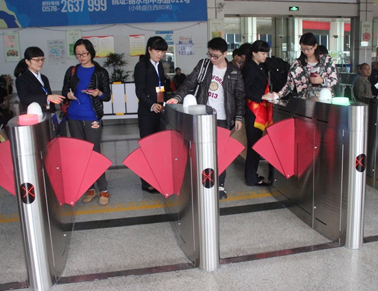 在西站候车厅,五台崭新的自助检票机立于3-6号检票口之间,形成4条自助进站闸机通道。据了解,与地铁、高铁闸机不同的是,我站采用的仍是普通纸质车票,通过红外扫描即可进站乘车。目前,四条自助闸机通道仅限于成人票,一些特殊票种,如半票、军票以及有携带免票儿童的旅客仍需走人工通道,这不仅是出于安全考虑,同时也是为了核验免票儿童人数,防止超载。