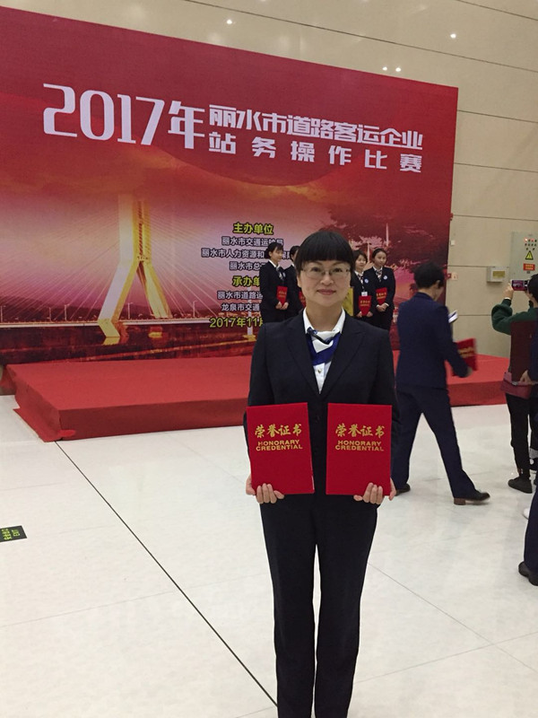 2017年11月11日,丽水市道路运输客运企业站务操作比赛在龙泉客运中心落下帷幕,来自丽汽集团的4名站务员从丽水九县市36名参赛选手中脱颖而出,囊括了比赛冠亚军,其中摘取行车、站售奖项桂冠的周丽梅和季一梅还被授予“丽水市技术能手”荣誉称号,成为丽水道路运输行业两朵并蒂吐艳的红梅。