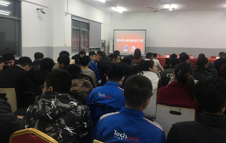何总对全体员工提出了两点要求,一是希望全体员工能够坚定信心、群策群力,撸起袖子加油干,使上汽大众在丽水重振辉煌。二是希望新公司、新面貌、新作为,希望大家早日融入丽汽大家庭,展示丽汽人的精神和风采。章有宝总经理用提高三个意识对全体员工作了要求:一是提升服务意识;二是树立齐心协力、精诚团结意识;三是提高安全生产、规范操作、安全防范意识。