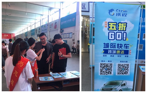 为了回馈广大旅客,让旅客们享受方便快捷的购票体验,自7月7日开始,东站联合携程网推出丽水至青田城际快巴到站扫码首单五折优惠。 本次优惠活动将延续至整个暑期,每天8:00至17:00携程网都会安排工作人员在售票厅指导旅客进行操作。 旅客只要在售票厅用微信或支付宝扫描工作人员提供的专属二维码,就可以轻松买好丽水至青田城际快巴车票,首单扫码购票还可享受五折优惠。