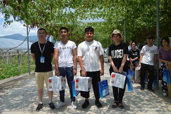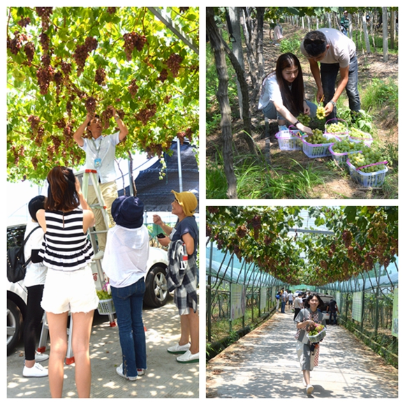 “这个好甜!” “我喜欢这个品种的味道!”学员们一到达葡萄园,工作人员们就端来了沏好的端午茶和刚采摘的新鲜葡萄……学员们迫不及待的品尝起来。