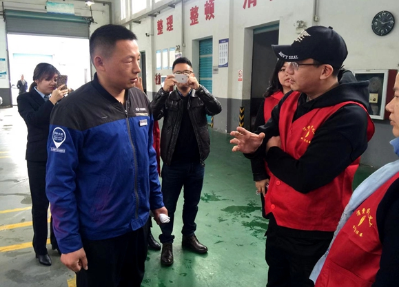 丽水伊翔副总经理刘道美给前来参加交流的消费维权义工们介绍了伊翔公司概况、服务流程、配件正副产件区别及公司推行的明白消费服务情况,让参加交流会的代表们对4S店的构架、服务和明白消费有了基本的了解。随后一行人前往车间,由公司售后人员现场讲解了车辆维护保养的一些日常基本操作常识和注意事项,并现场向志愿者们答疑解惑。