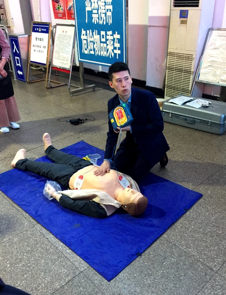 3月21日中午,由丽水市红十字会提供的壹台自动体外除颤器正式投放至丽水客运东站,用于东站的应急救援工作。丽水市红十字会的工作人员在东站售票厅进行了仪器设置并进行现场应急救护培训。丽水东站业务站、保卫科的工作人员以及周边商户参加了培训。