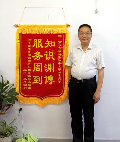 4月24日,一份来自河北的快递悄悄地抵达了丽水市旅游集散中心,打开一看竟是一面送给集散中心导游朱勇华的锦旗,上面赫然写着“知识渊博 服务周到”。