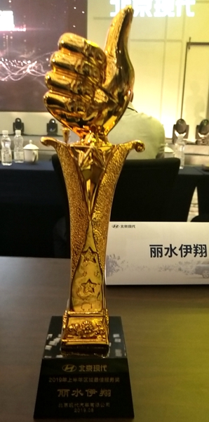 8月21日,在烟台举行的北京现代半年度经销商大会上,丽水伊翔荣获“2019年上半年区域最佳服务奖”。 工作中,伊翔公司全体员工团结进取、开拓创新,不断提高服务质量,以优质的服务和热忱的态度服务于广大车主,获得了广大顾客和北京现代厂家的肯定。