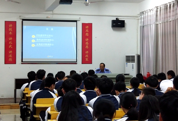 9月24日下午,学校特邀请莲都区公安分局白云派出所民警曹起和对师生进行以《遵纪守法•共筑和谐校园》为主题的法制宣传讲座。讲座主要围绕四大主题展开:守法意识牢记在心、防范意识时刻在心、反毒意识铭刻在心、反邪教意识警惕在心。