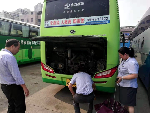 在新中国成立70周年来临之际,为切实抓好安全生产,杜绝机械事故的发生,结合集团公司开展的“防风险、保安全、迎国庆”主体活动。 9月30日上午,旅游汽车分公司副经理薛虹带队对东西两站车辆进行全面细致的安全大检查,不放过任何一个盲区,不留一处死角。对于安全设备不符合规定的、设施设备不齐全的车辆,督促其进行安全检修和更换,以保证车辆处于良好技术状态,确保节日期间旅客运输服务优质、安全、有序。