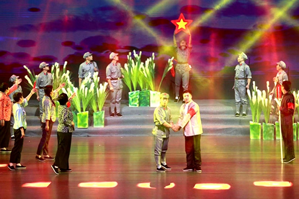 10月18日,集团公司共27位演职人员参加了文艺会演,大家有身着红军服,有着游击队员服,手持红樱枪、道具手枪等,形象逼真,还原到战火纷飞的革命战争年代。能在丽水市最大、最好的舞台演出,大家深感荣幸,兴奋到极点,全部激情演唱,获得台下观众热烈的掌声。