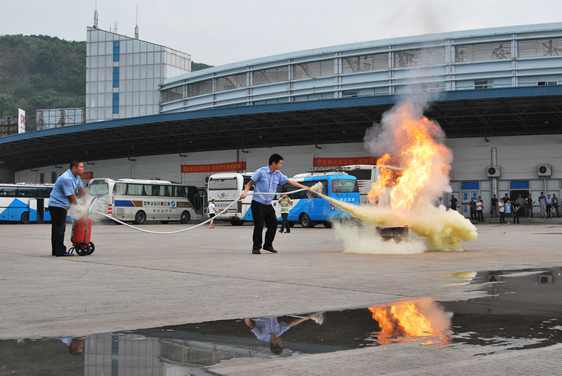 结合“安全生产月”活动的开展,6月20日,集团公司在客运西站停车场举行消防应急演练。集团公司保卫稽查部和客运西站各派出9名义务消防员参加。