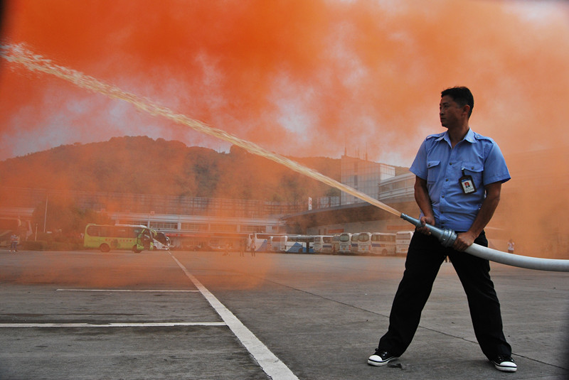 演练项目包括遇火情车辆疏散模拟演练、明火水枪灭火、明火灭火器灭火三个项目。通过应急演练,提高了义务消防队员在遇火情时的实战能力。