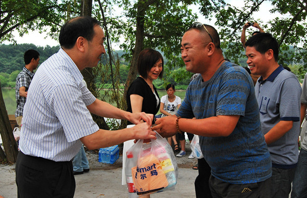 7月28日上午,丽水市总工会党组书记、常务副主席张为社、副主席叶云妹及市总工会有关部室领导冒着酷暑带着慰问品来到位于莲都区联城镇苏埠村的丽汽集团汽校训练场慰问工作在一线的汽校教练员。