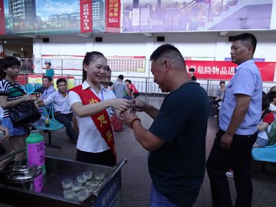 这几天,丽水最高气温持续在39-40摄氏度之间,炎热的太阳闷得让人透不过气。为做好防暑降温工作,东站党政领导结合实际,决定推出一项温馨服务:免费为旅客送凉茶。选用茶叶、白菊花、金银花等原料精心泡制清凉解暑的凉茶,组织服务人员在东站候车室免费提供给来往的旅客和司乘人员,将丝丝凉意送到每一位出行旅客的心坎上。 据气象部门预测,未来几天里,丽水还将迎来持续高温天气,东站已做好充分准备,为旅客营造一个舒适清凉的候车环境。