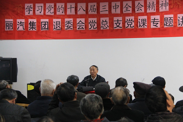 为把学习贯彻党的十八届三中全会精神引向深入, 11月28日丽汽集团离退委党支部特邀请丽水党校柯鉴清副教授给100余位党员上了一堂以“学习十八届三中全会精神”为主题的党课,从中国的形势、会议内容,行政体制改革和转变政府职能等方面进行宣讲,进一步深化了离退休党员对全会精神的理解。