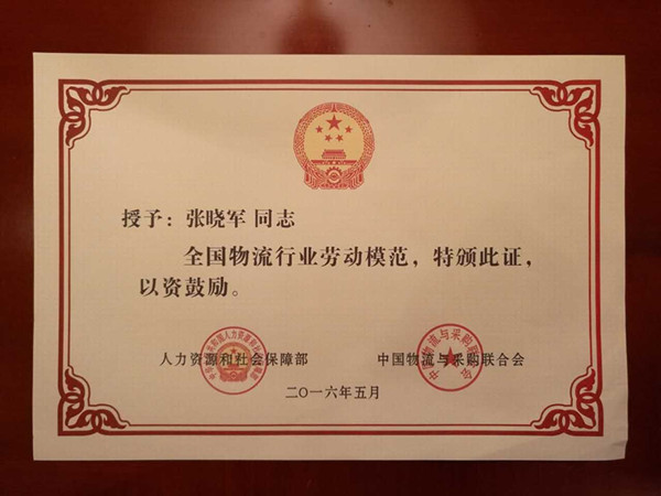 据悉,全国物流行业劳动模范的评选开始于2007年,每隔四年一届,本次为第三届。整个评选工作从2015年4月份开始,历时十个月,通过区、市、省、全国四级差额初评、复评、公示等环节,此次全国物流行业劳动模范共182名,浙江省11名,张晓军同志是丽水市唯一一名获此殊荣者。