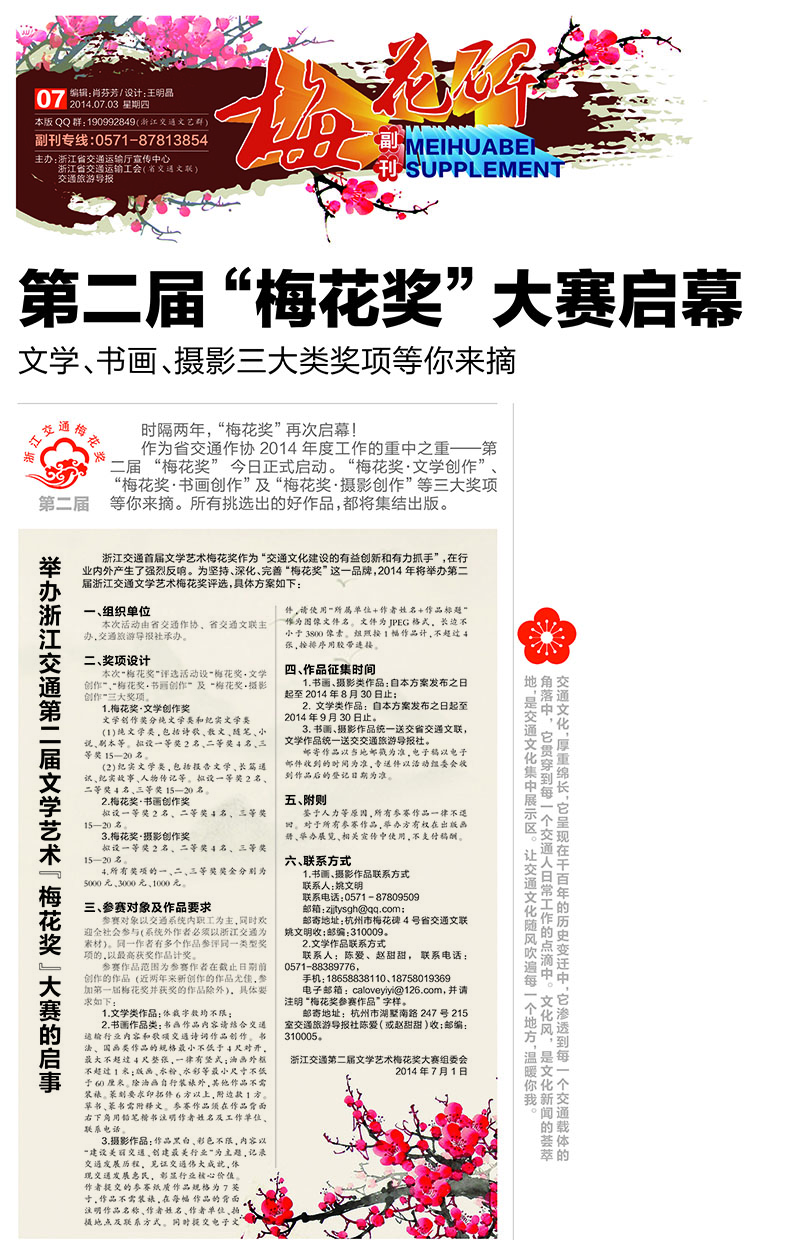 浙江交通第二届文学艺术“梅花奖”大赛启事