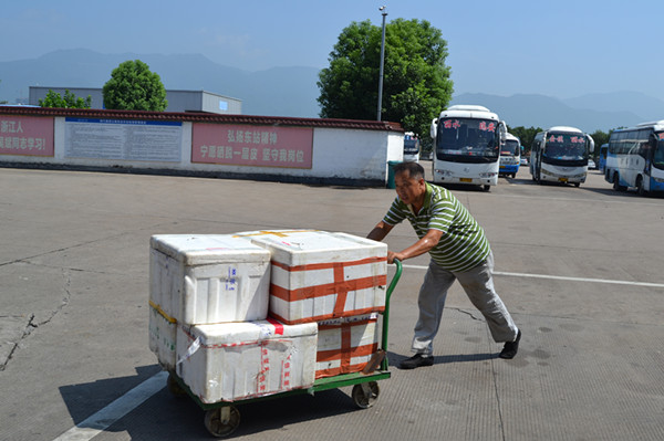 江永贵介绍,这还不是他们最苦最累的时候。如果班车集中到达或发班,装卸行包就要“抢”时间,那才是最累的,忙得像打仗。 车次时间集中时,经常是这趟车还没离去,另一趟车又进站了。 我们装卸工两人一班,正常情况一天装卸三四百件,多的时候装卸过五百多件,最重的单件货物有200多公斤。每趟班车装卸完毕,最大的愿望就是猛喝水,但很快又成了汗流了出来,而好处就是省得上厕所。”江永贵调侃道。