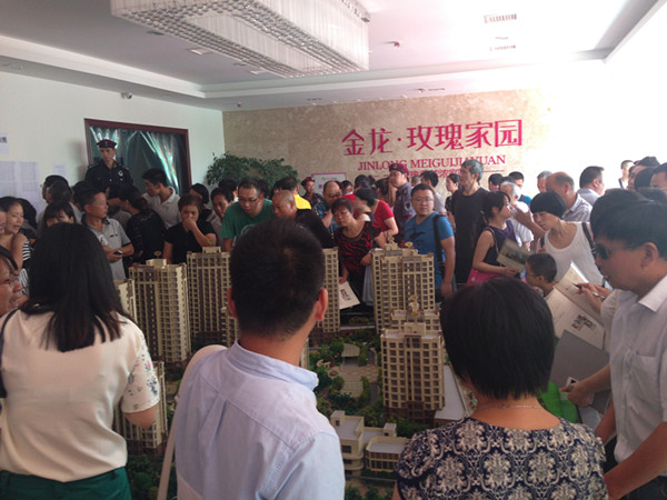 9月6日下午15时,房产公司举行了金龙•玫瑰家园开盘仪式,并推出了400多套房源,户型有60、70、90、130平方米等不同面积。面对起价9900元/平米、均价12980元/平米、一次性付款还可享93折优惠的价格,开盘后,售楼部展厅内是人头攒动,门厅外也排起了长龙。开盘三天,60~90平方米户型便已基本售罄,130平方米优质户型也所剩不多。