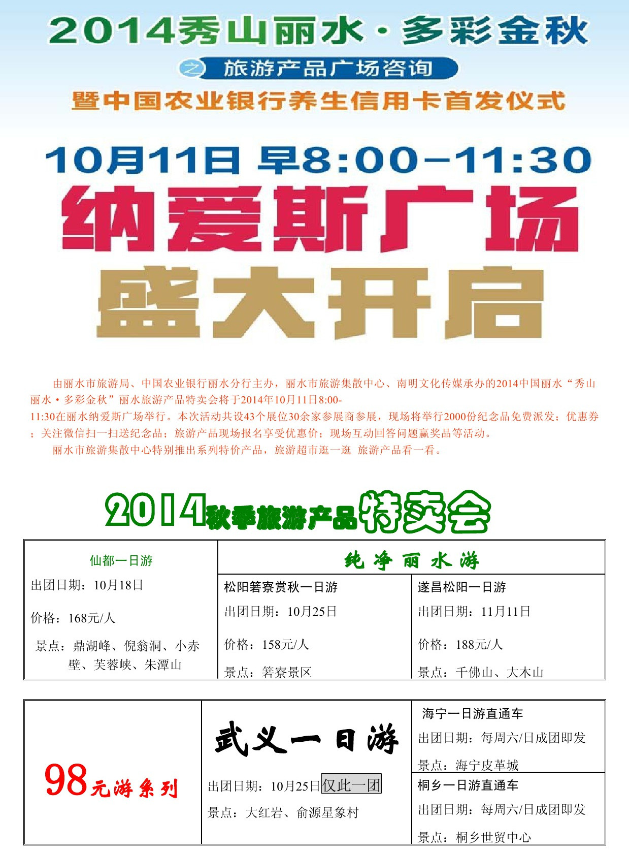 2014秀山丽水多彩金秋旅游产品咨询会明天举行