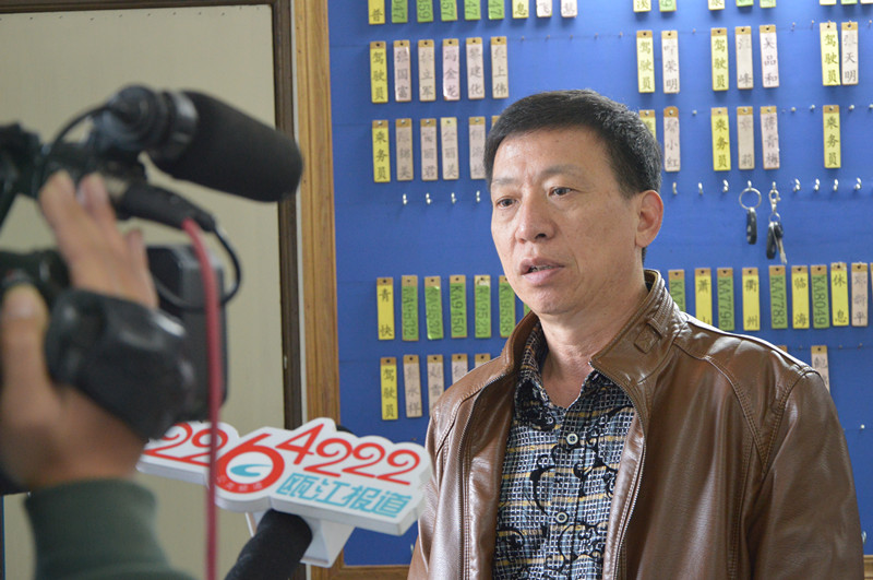 客长运分公司车队长楼群面对记者表达了他对章双林的肯定(张国军/摄)