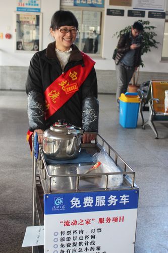 1月21日,随着春节的日益临近西站客流量明显增多,西站“春运志愿者服务队”今天正式拉开了服务序幕。上午9:00一个个志愿者服务队员们身披彩带,他们有的给旅客送热姜茶、有的帮助旅客自助购票,有的引导旅客安检,有的在售票厅维持秩序,有的穿梭于候车旅客中间服务,“我来帮您提行李”,“大爷我搀扶您上车”,“出门要看管好行李”,一句句贴心的温馨提示让旅客们感到温暖,一次次主动帮助给旅客们留下美好记忆,志愿服务给回家过年的旅客们铺就了方便、安全、和谐的旅途。