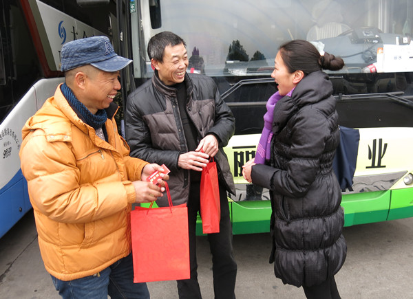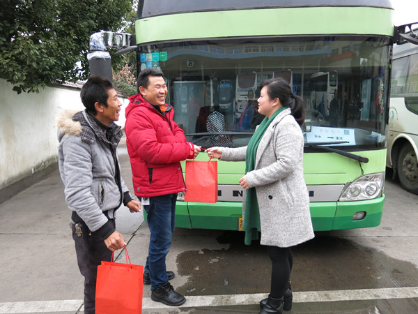 2月4日,春运第一天上午,旅游汽车分公司领导前往汽车客运东站,慰问春运加班的驾驶员,叮嘱驾驶员路途中一定注意行车安全,如遇到下雨、下雪、大雾等恶劣天气时,要按照限速规定严格控制车速,避免发生交通事故,搭班驾驶员要互相照应,不要疲劳驾驶。