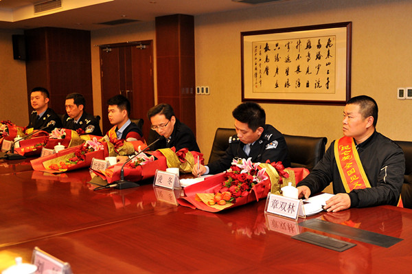 12月24日下午,荣获第十二届“昆仑奖”“全国见义勇为英雄司机”的章双林刚到杭州,就受到了省委常委、公安厅长刘力伟的亲切接见。省公安厅专门召开座谈会,欢迎英雄司机从北京载誉归来。