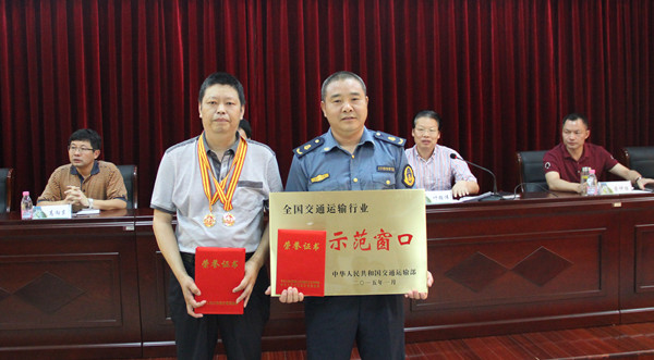 6月30日上午,市交通运输局召开会议,表彰“模范司机”吴斌荣获全国交通运输系统劳动模范、全国交通运输行业文明职工标兵称号。在全市交通运输系统年中安全生产会议开始前,市交通运输局党组书记、局长叶沙平亲自为吴斌颁发了证书、奖章。会议还同时表彰了330国道丽水超限运输监测站获得全国交通运输行业文明示范窗口称号。