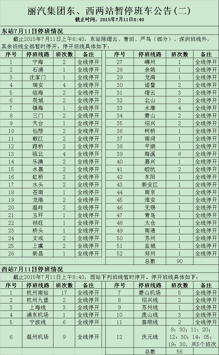 丽汽集团东、西两站暂停班车公告(二)