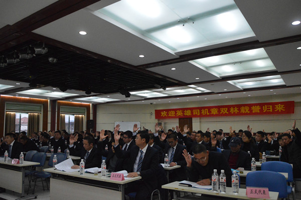 12月25日下午,丽汽集团十二届一次职工代表大会暨十五届工会会员代表大会在集团公司第一会议室召开,总经理薛和有主持会议。集团公司111名正式代表和29名列席(特邀)代表参加了会议,市总工会党组书记、常务副主席陈子民应邀参加会议并讲话。