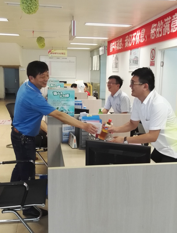7月14日下午,集团公司党政工联合开展“送凉爽”活动,慰问奋战在高温一线的广大干部员工,把关爱和凉爽送到每个人的心中。 送凉活动分三个小组进行,党委书记叶茂、常务副总何赤诠、工会主席吕丽君分别到机关、西站、东站片区送凉。他们每到一处与员工亲切交谈,嘱咐他们注意安全生产,做好防暑降温工作,特别要注意劳逸结合。