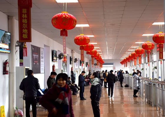 1月20日,客运东站党总支部组织二十几名党员在东站、高铁站上客点候车厅悬挂大红灯笼,喜迎2019年春运,这也是东站党总支部新年以来开展的首个主题党日活动。